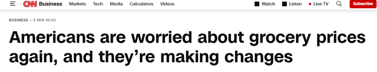 報(bào)道還指出,民調(diào)清晰地表明美國(guó)人對(duì)高昂的食品成本和經(jīng)濟(jì)狀況倍感焦慮,他們的購(gòu)物方式也因此出現(xiàn)巨大改變。這與眾多企業(yè)提到的情況一致,他們表示消費(fèi)者正在調(diào)整購(gòu)物模式,比如從購(gòu)買大包裝改成買小包裝,只買生活必需品,更多地在家吃飯。