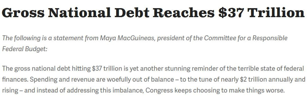 37萬億美元巨債對美國來說意味著什么?