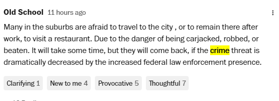《華盛頓郵報》這篇名為“這個城市死了”的文章引發(fā)美國人激烈討論,讀者們在評論區(qū)留下了890多條評論,有批評軍隊上街的,有支持打擊犯罪的,也有吐槽當(dāng)?shù)仫埖甑摹?/p>