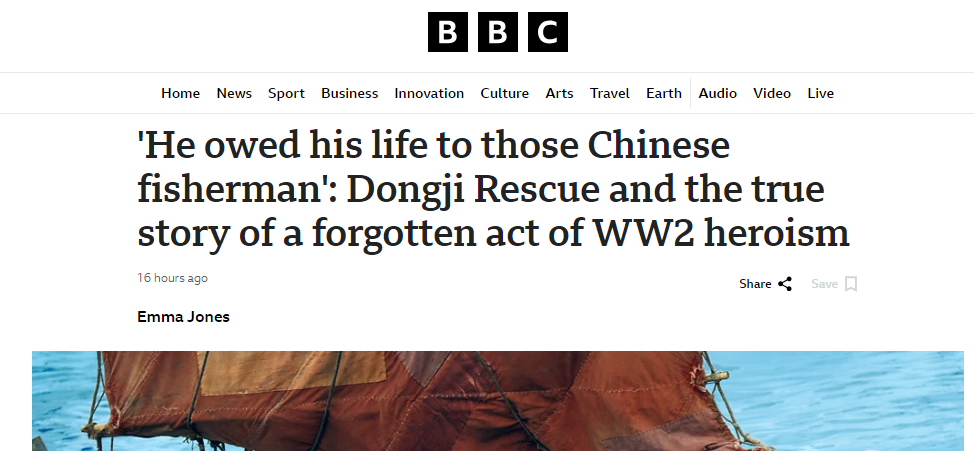 暑期檔電影《東極島》正在熱映,影片講述了1942年,一艘搭載英軍戰(zhàn)俘的船只在舟山群島附近被潛艇擊沉,上千名戰(zhàn)俘被封鎖在船艙內(nèi),命懸一線。危難之際,東極島上的漁民,不顧風(fēng)高浪急與生命危險,毅然駛向深海救人的故事。近日,英國廣播公司網(wǎng)站發(fā)表一篇文章回顧了相關(guān)歷史事件,標(biāo)題是《“他的生命歸功于中國漁民”:東極島救援與二戰(zhàn)中一段被塵封的英雄事跡》。