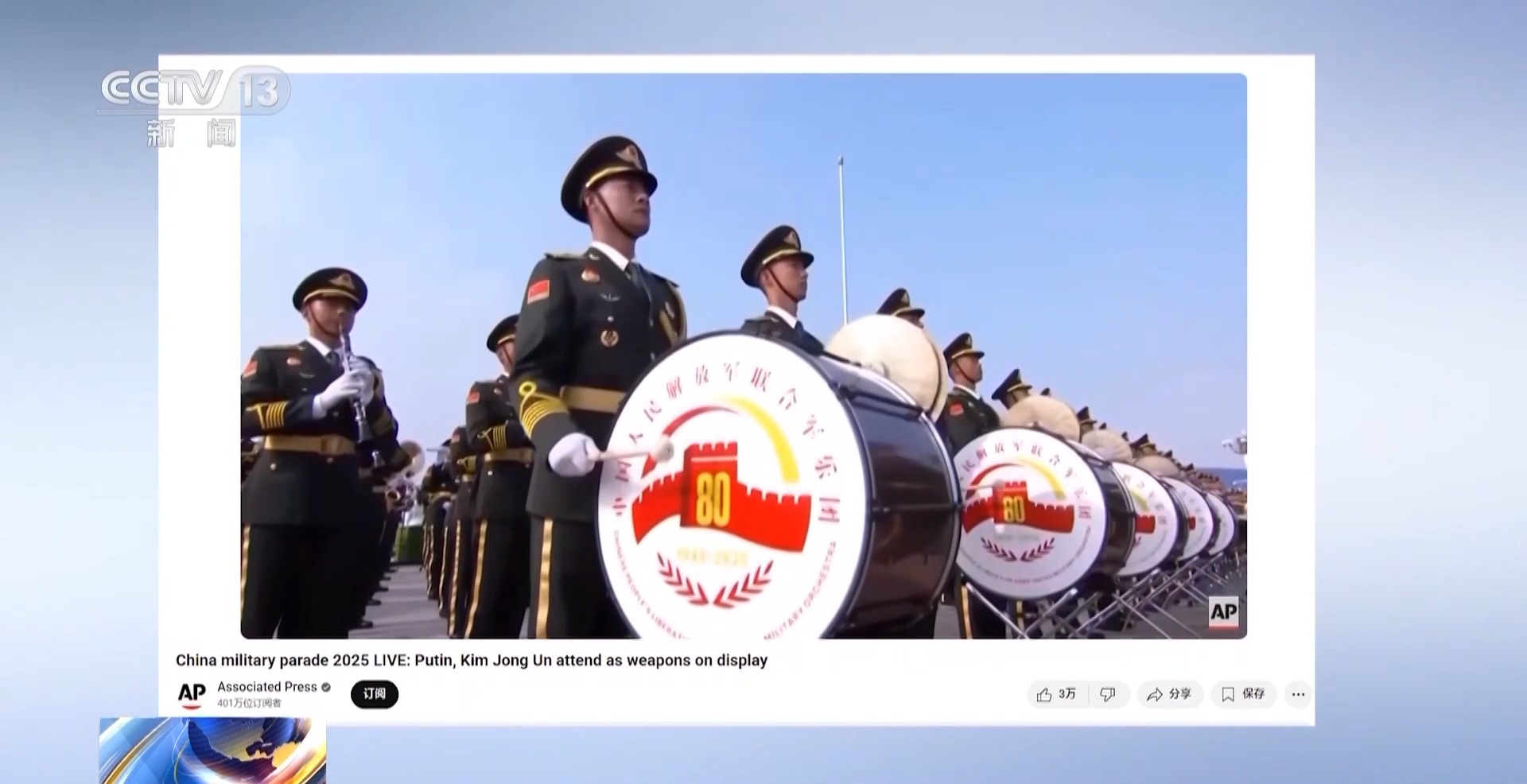 在歐洲,英國廣播公司(BBC)、英國天空電視臺、法國商業(yè)調(diào)頻電視臺、意大利廣播電視公司、德國電視一臺、德國電視二臺等歐洲40多個國家和地區(qū)的電視臺及新媒體平臺對紀念大會和閱兵式進行報道。