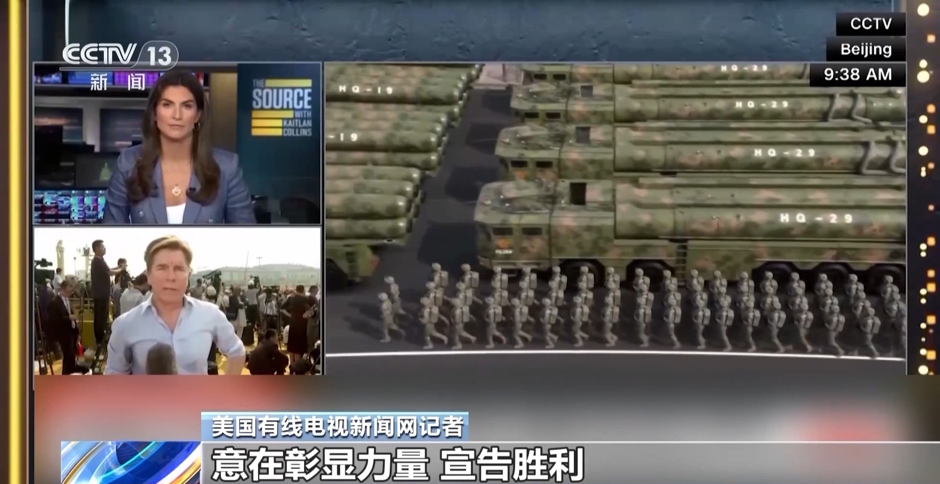 美國有線電視新聞網(wǎng)主持人:今晚此刻,我們正在關(guān)注北京這場盛大閱兵的現(xiàn)場直播畫面 。