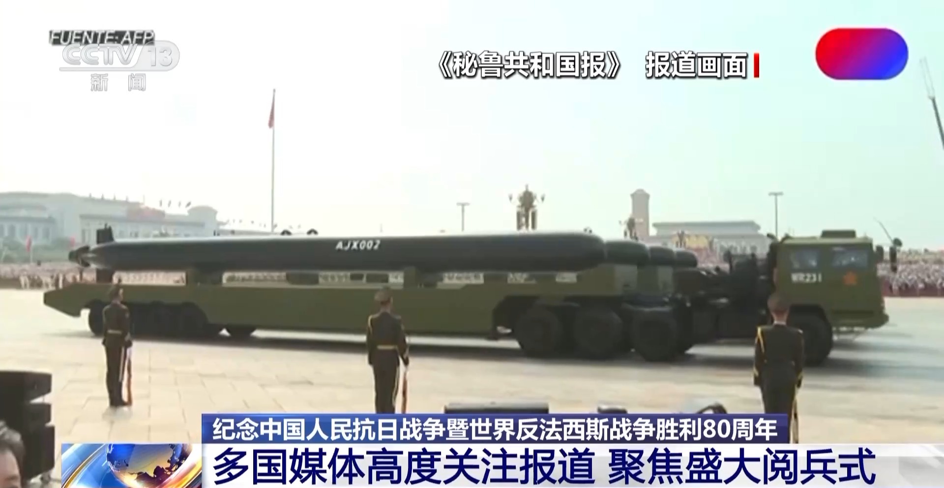 秘魯國家電視臺全程直播了3日的閱兵式?!睹佤敼埠蛧鴪蟆?、秘魯《商報》等多家媒體均關(guān)注報道了閱兵式上展示的先進軍事裝備。