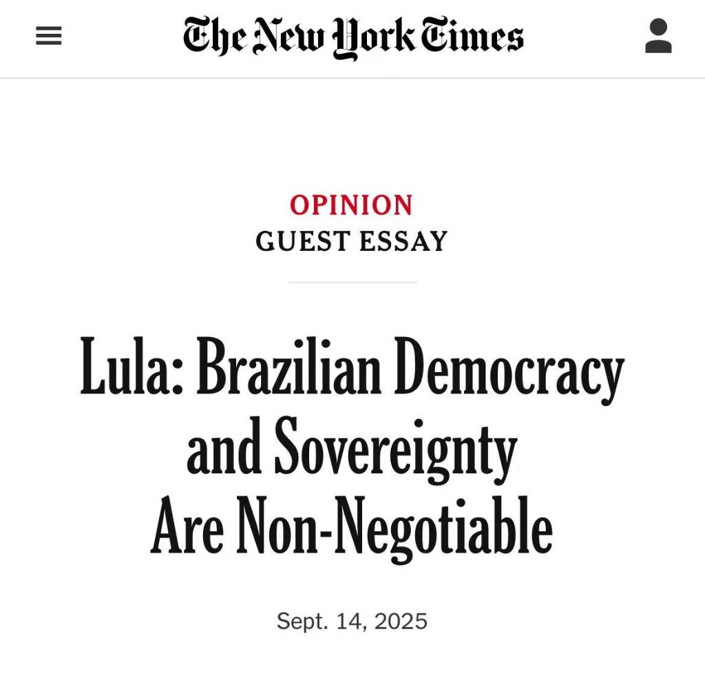 巴西總統(tǒng)盧拉9月14日在美國(guó)《紐約時(shí)報(bào)》觀點(diǎn)專(zhuān)欄發(fā)表客座文章。