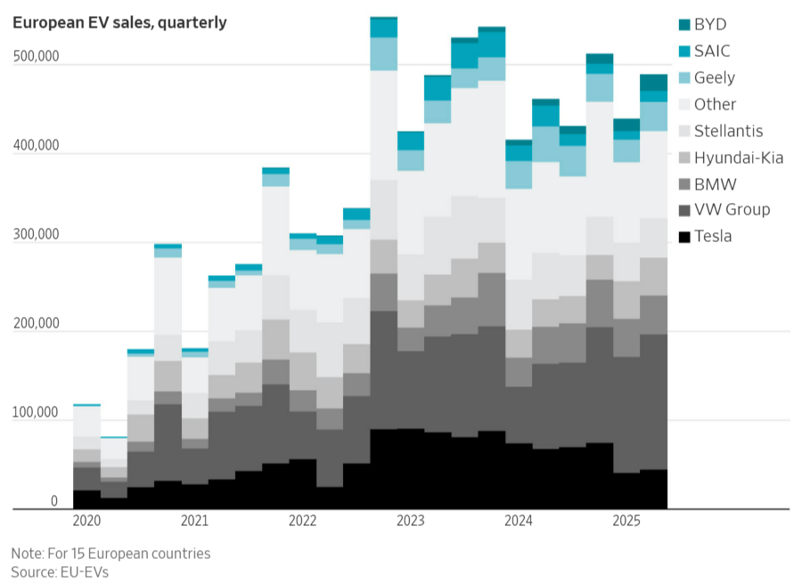 《華爾街日報》9月17日發(fā)表文章稱,在電動汽車領(lǐng)域,“中國制造”的足跡在不斷擴(kuò)大,目前已占全球電動汽車銷量的一半以上。