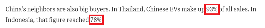 其次,中國的鄰國也是電動汽車的大買家。在泰國,中國電動汽車占總銷量的93%。在印度尼西亞,這一數(shù)字達(dá)到了78%。