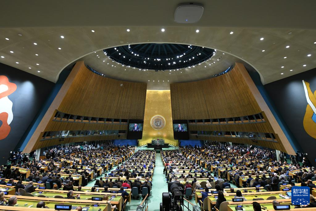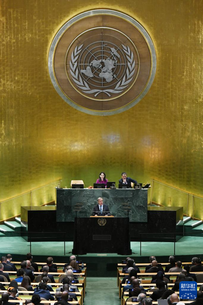 9月23日,在位于紐約的聯(lián)合國(guó)總部,聯(lián)合國(guó)秘書長(zhǎng)古特雷斯在第80屆聯(lián)合國(guó)大會(huì)一般性辯論開(kāi)幕式上致辭。新華社記者李睿攝