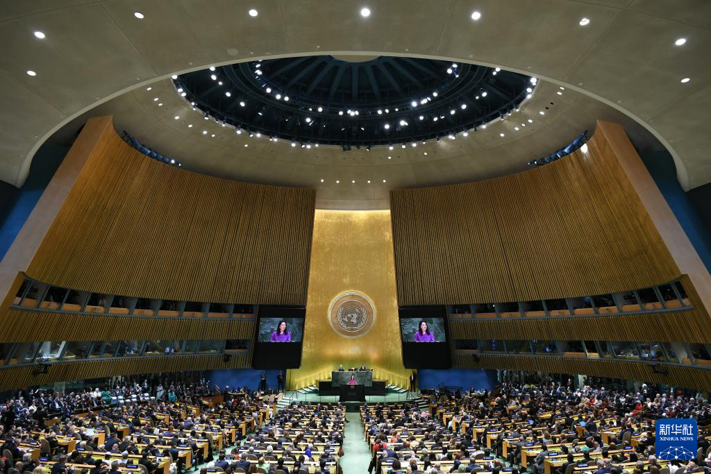 9月23日,在位于紐約的聯(lián)合國(guó)總部,第80屆聯(lián)大主席貝爾伯克(中)主持第80屆聯(lián)合國(guó)大會(huì)一般性辯論開(kāi)幕式。新華社記者吳曉凌攝