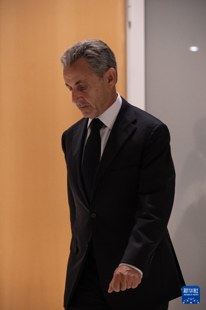 9月25日,在法國巴黎,法國前總統薩科齊在庭審后離開。新華社發(fā)(奧雷利安·莫里薩爾攝)