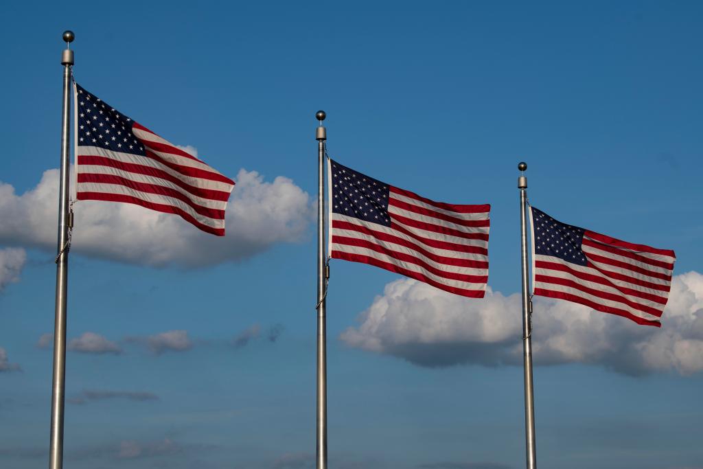 這是2020年8月19日在美國(guó)華盛頓拍攝的美國(guó)國(guó)旗。新華社記者劉杰攝