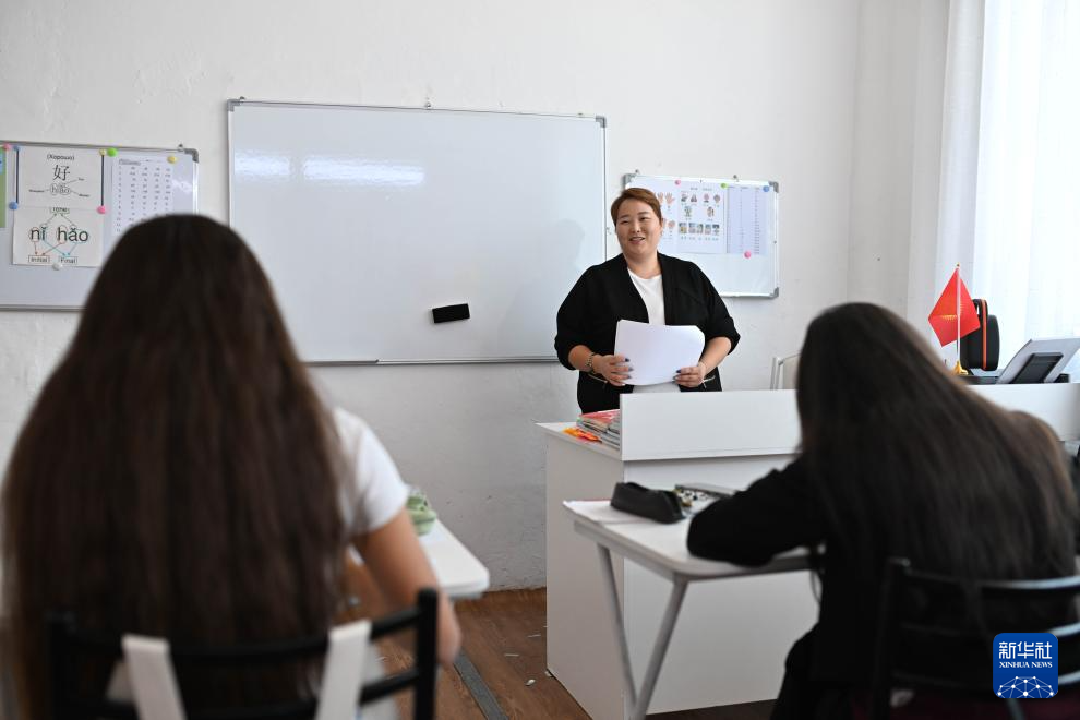 9月22日,在吉爾吉斯斯坦伊塞克湖州卡拉庫爾市,庫巴內(nèi)奇別科娃在中文培訓(xùn)中心授課。新華社記者 李任滋 攝