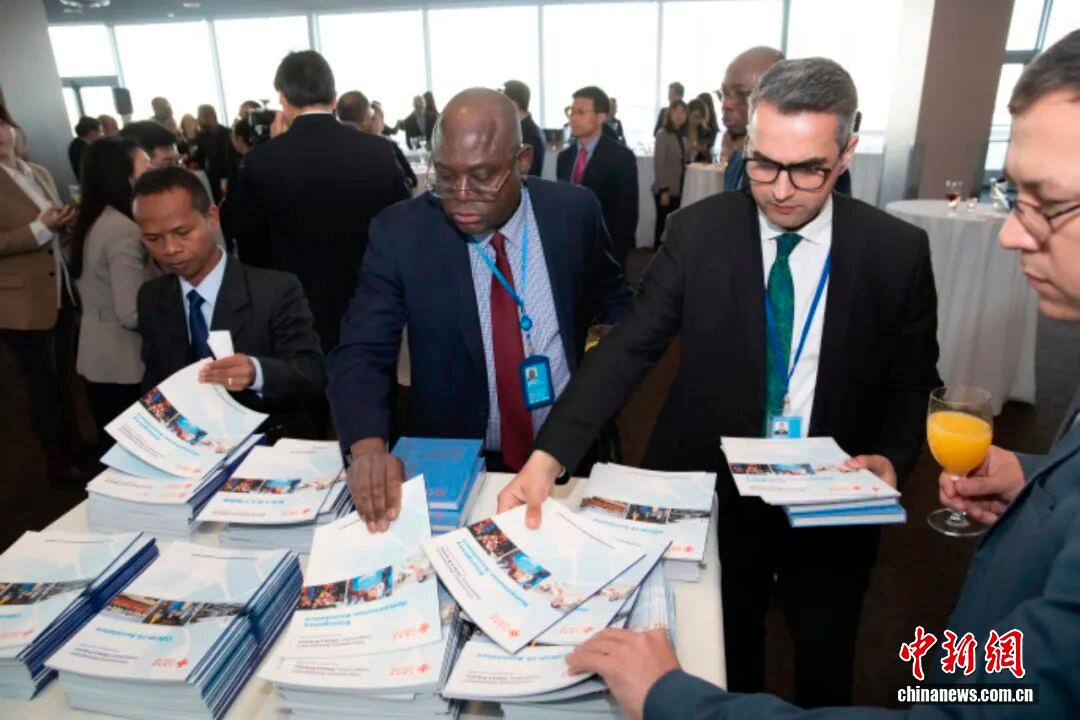 當(dāng)?shù)貢r間2023年4月19日,“全球發(fā)展倡議新進(jìn)展可持續(xù)發(fā)展議程新行動”主題展覽在紐約聯(lián)合國總部舉行。圖為與會嘉賓取閱國合署發(fā)布的新報告——《國際發(fā)展合作的中國實(shí)踐》。 中新社記者 廖攀 攝