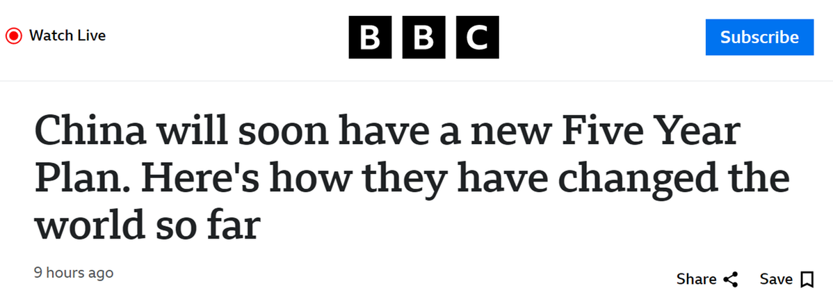 英國廣播公司(BBC)網(wǎng)站報(bào)道稱,中共二十屆四中全會(huì)將奠定中國未來五年發(fā)展規(guī)劃的基礎(chǔ),這是世界第二大經(jīng)濟(jì)體在2026年至2030年間將遵循的藍(lán)圖。歷史證明,中國科學(xué)制定和接續(xù)實(shí)施的五年規(guī)劃已經(jīng)深刻重塑全球發(fā)展格局。