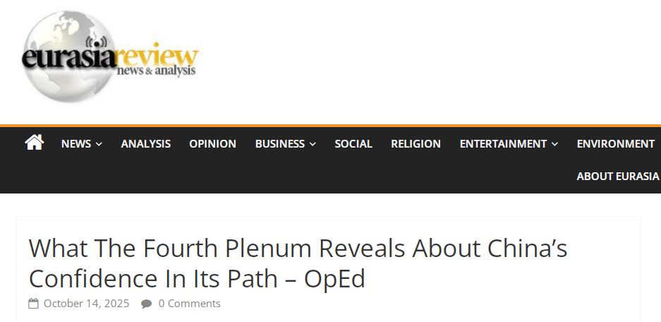 《歐亞評論》(Eurasia Review)網(wǎng)站題為《四中全會(huì)展示中國道路自信》的文章指出,中共二十屆四中全會(huì)的召開釋放出最鮮明信號(hào),面對全球經(jīng)濟(jì)不確定性加劇的背景,中國依然展現(xiàn)出對自身發(fā)展道路的信心與戰(zhàn)略定力。