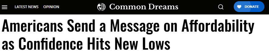 “基層合作組織”(Groundwork Collaborative)政策與倡導(dǎo)部門主管亞歷克斯·雅克茲指出,美民眾對(duì)經(jīng)濟(jì)的信心下滑源于實(shí)際生活壓力的加重。他認(rèn)為,當(dāng)前政府在經(jīng)濟(jì)管理上未能有效改善民生,反而導(dǎo)致家庭債務(wù)創(chuàng)下新高,物價(jià)不斷上漲,信心指數(shù)自然跌至低谷。