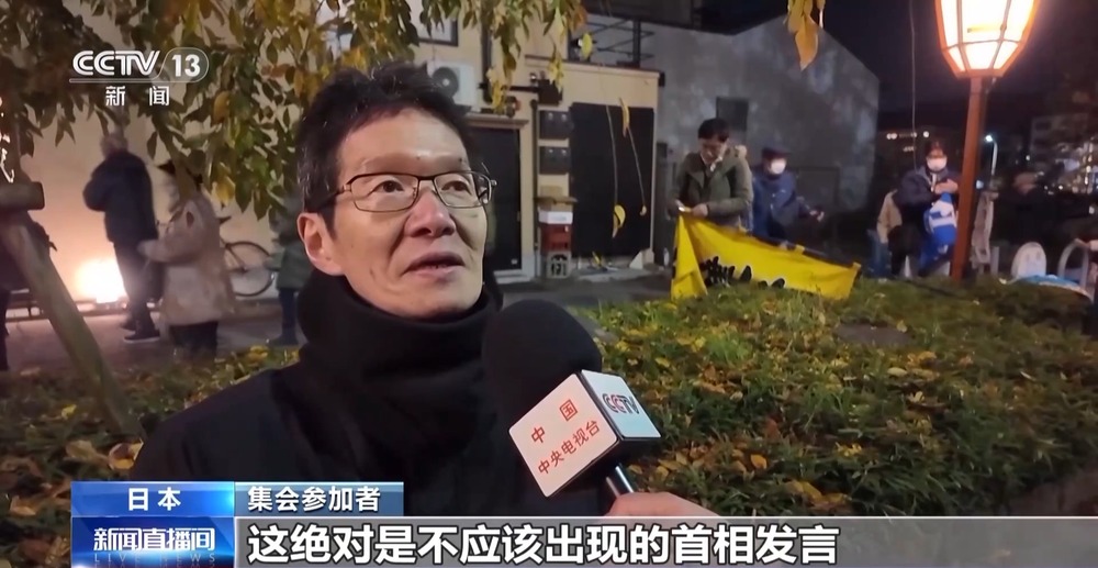 集會參加者:我當然認為高市應該撤回錯誤言論,對于國民來說,這絕對是不應該出現(xiàn)的首相發(fā)言,我認為這是違反憲法的。