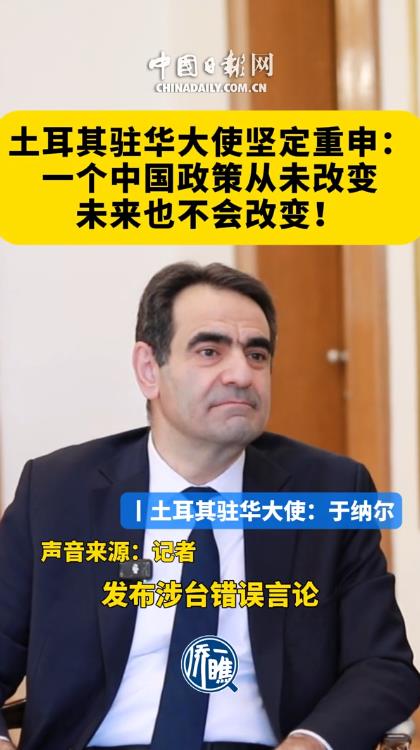 近日土耳其駐華大使于納爾在接受中國日報專訪時,就日本首相高市早苗發(fā)表涉臺錯誤言論表示,土耳其自1971年與中國建交以來,始終堅定不移地奉行一個中國政策,“這一立場從未改變,也絕不會改變”。