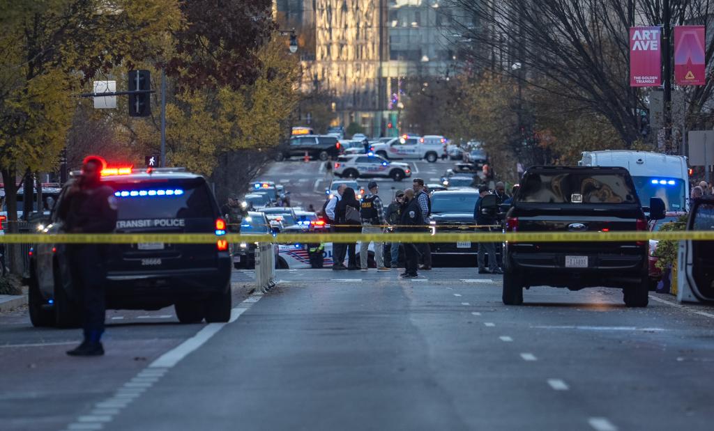 11月26日,在美國(guó)首都華盛頓,警方封鎖案發(fā)現(xiàn)場(chǎng)附近街道。新華社記者胡友松攝