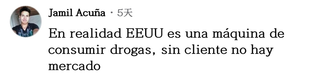拉美網(wǎng)友們清楚認識到,美國作為全球最大的毒品消費國,把禁毒責任轉嫁給拉美國家,甚至不惜進行軍事施壓威脅,凸顯美國的虛偽面目。美國在自身毒品頑疾上本末倒置、別有用心的行徑激起了拉美網(wǎng)友的集體憤慨。