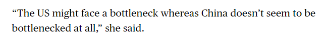 文章說,中國的能源建設(shè)速度無與倫比。過去四年,中國新增的發(fā)電容量超過了整個(gè)美國電力系統(tǒng)的總和。這種大規(guī)模能源基礎(chǔ)設(shè)施投資幫助中國降低對化石燃料依賴,為人工智能數(shù)據(jù)中心等高耗能技術(shù)提供穩(wěn)定電力供應(yīng),從而在全球科技競爭中獲得顯著優(yōu)勢。