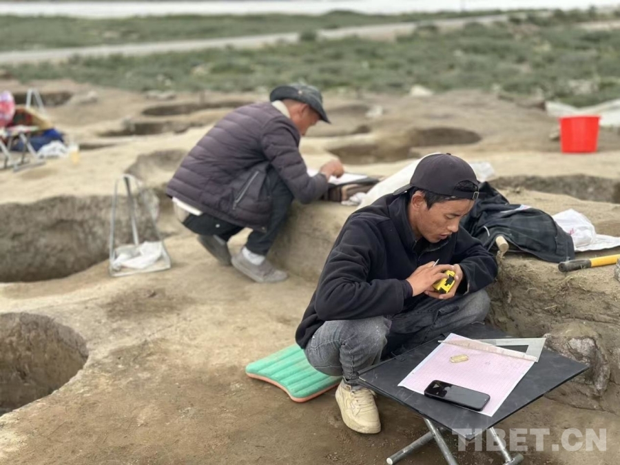 圖為達瓦格桑和團隊工作人員開展廓雄遺址田野考古發(fā)掘工作