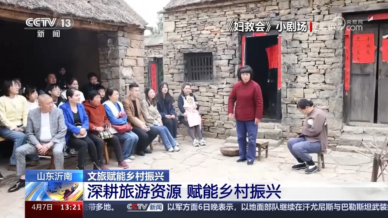清明假期,在沂南縣的紅色影視基地,沉浸式小劇場正在表演《婦救會》的劇目,吸引了眾多游客駐足打卡。這個劇目講述的是在抗戰(zhàn)時期,沂蒙革命老區(qū)涌現出了一群婦女同志支前的事跡,這個群體被稱為“沂蒙紅嫂”。演員們精湛的演技,把觀眾帶入其中,猶如身臨其境。