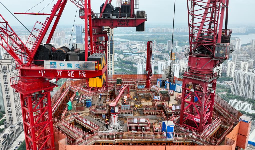 4月12日,工人在??谑泻D现行捻?xiàng)目施工作業(yè)(無(wú)人機(jī)照片)。新華社記者 楊冠宇 攝