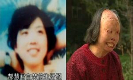 ▲郝惠君自焚前后的照片
