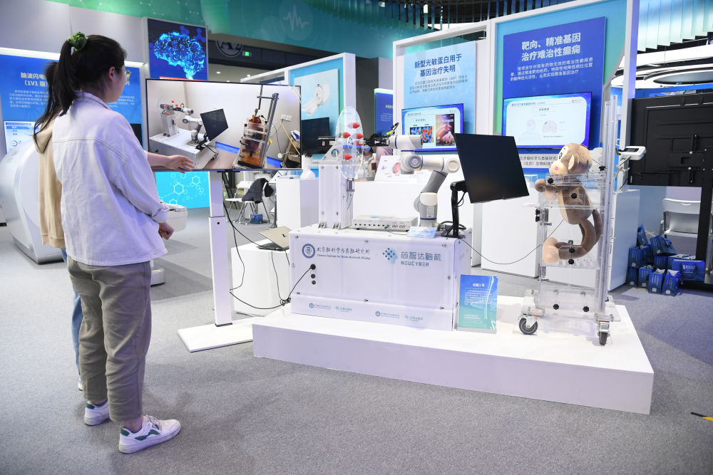 這是2024年4月27日在中關(guān)村展示中心常設(shè)展中拍攝的“北腦二號”腦機接口。