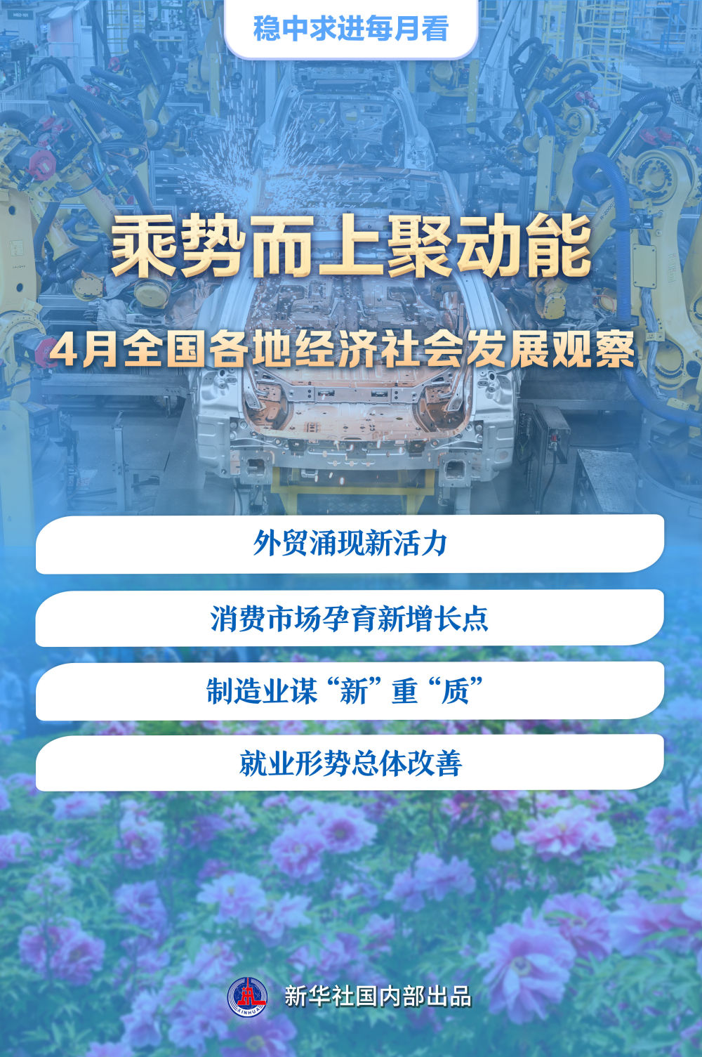 春意盎然育生機。一季度經濟數據出爐釋放積極信號,消費市場亮點紛呈,經濟社會發(fā)展對就業(yè)的帶動效應逐步顯現……今年4月,全國各地真抓實干,乘勢而上,進一步鞏固和增強經濟回升向好態(tài)勢。