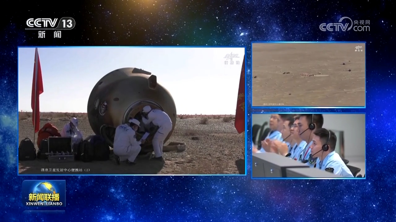 16時56分,北京航天飛行控制中心通過地面測控站發(fā)出返回指令,神舟十七號載人飛船軌道艙與返回艙成功分離。之后,飛船返回制動發(fā)動機點火,推進艙與返回艙分離,返回艙成功著陸,擔負搜救回收任務的搜救分隊及時發(fā)現目標并抵達著陸現場。返回艙艙門打開后,醫(yī)監(jiān)醫(yī)保人員確認航天員身體健康。