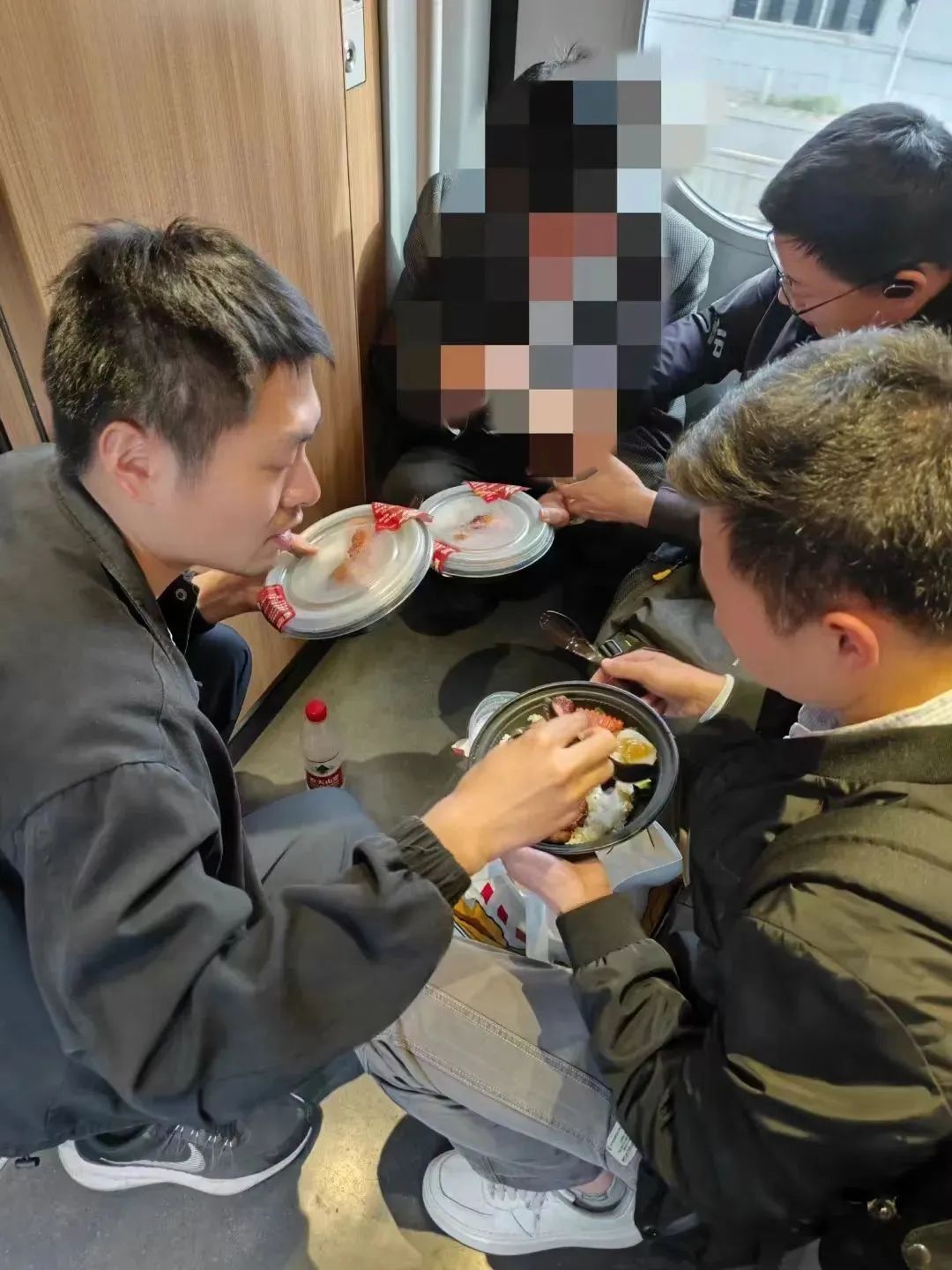 不修邊幅地在高鐵上席地而睡