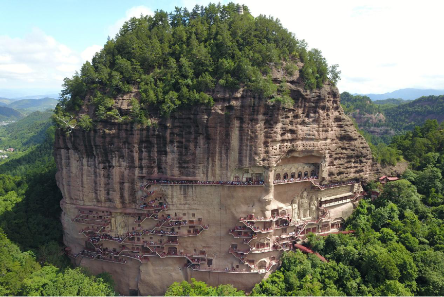 麥積山石窟(無人機(jī)照片)。新華社記者 范培珅 攝