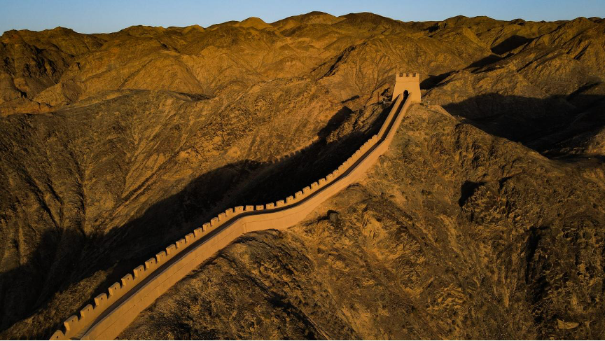 甘肅省嘉峪關(guān)市拍攝的懸壁長(zhǎng)城(無人機(jī)照片)。新華社記者 陳鐘昊 攝