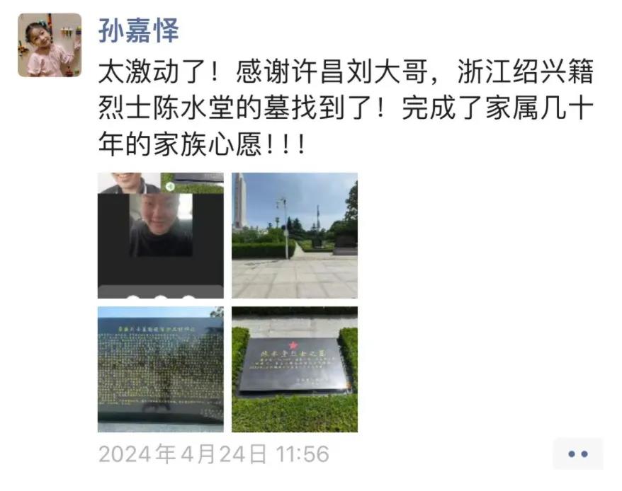 隨后,孫嘉懌聯(lián)系了許昌當(dāng)?shù)氐闹驹刚?,在烈士陵園內(nèi),他們找到了陳水堂烈士的名字。從接到求助到完成,前后不到24小時。然而,在孫嘉懌經(jīng)歷的案例中,這樣的其實是極少數(shù)。