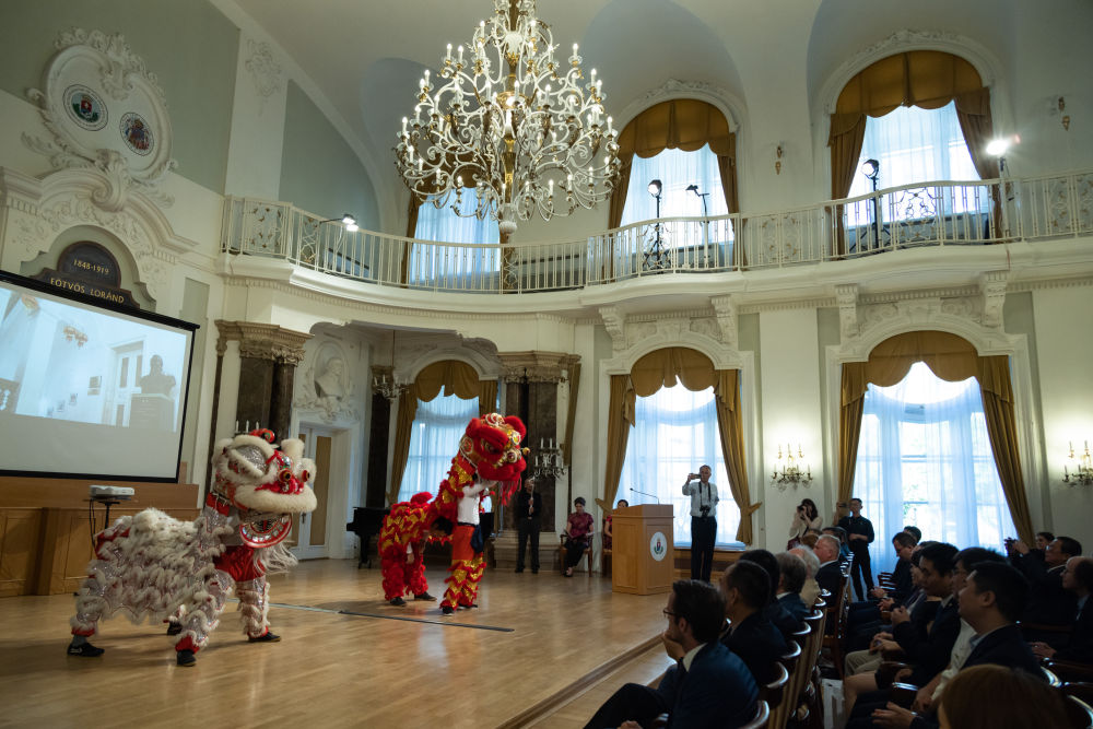 這是2022年6月21日在匈牙利布達(dá)佩斯舉行的羅蘭大學(xué)孔子學(xué)院成立15周年慶典上拍攝的舞獅表演。目前,匈牙利已開(kāi)設(shè)5所孔子學(xué)院。