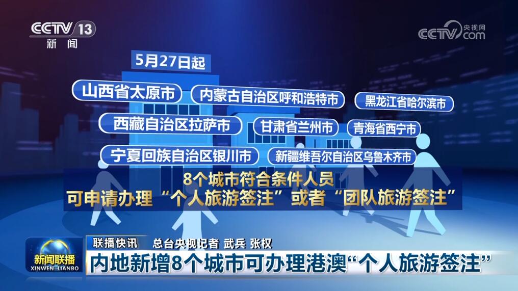 內(nèi)地新增8個(gè)城市可辦理港澳“個(gè)人旅游簽注”