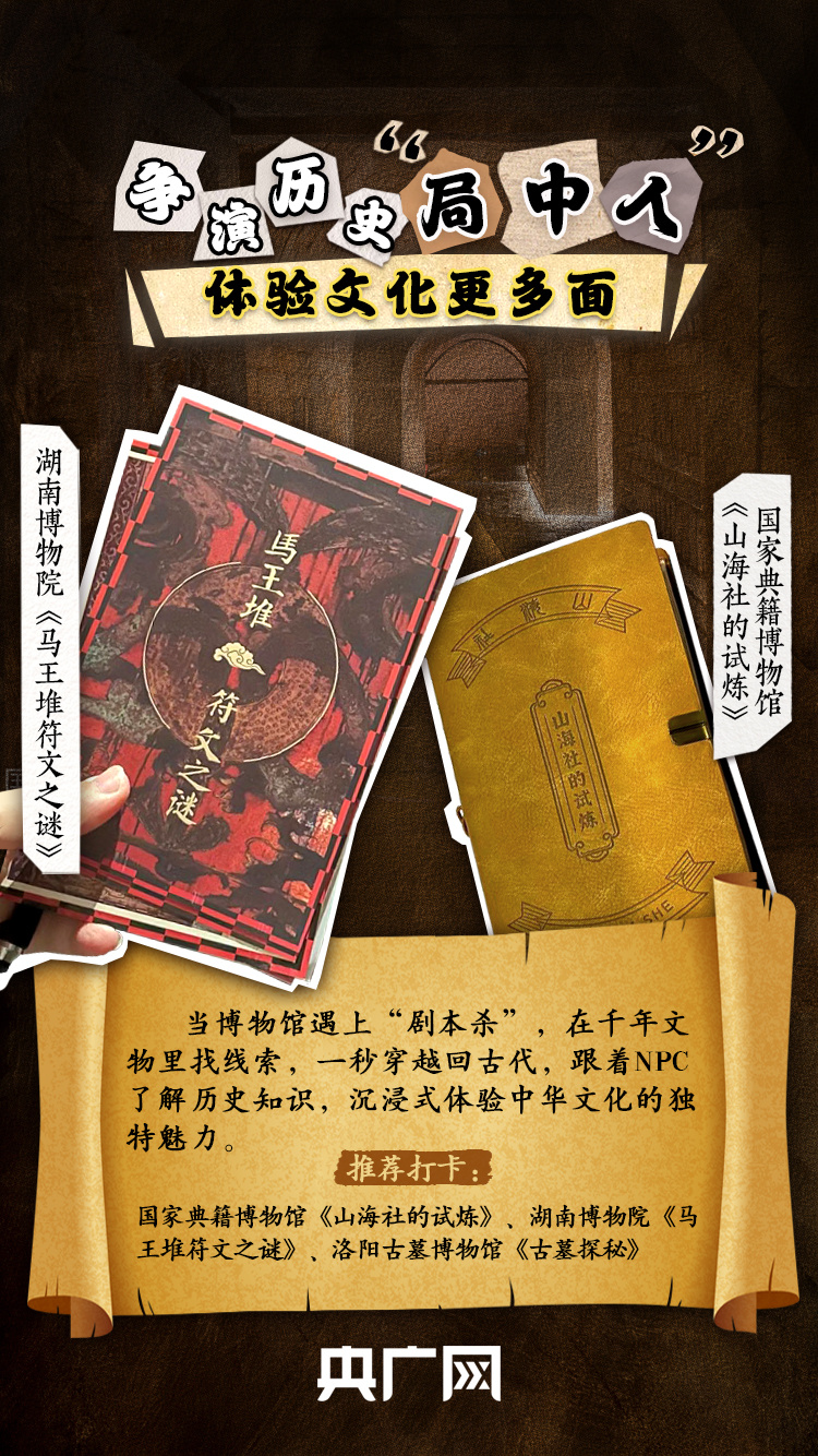 在國家典籍博物館的甲骨文展覽中尋找線索、到湖南省博物館破解“馬王堆符文之謎”……“五一”假期,不少人在博物館進(jìn)入“劇本殺”的世界,跟著NPC了解歷史知識,沉浸式體驗中華文化的魅力。