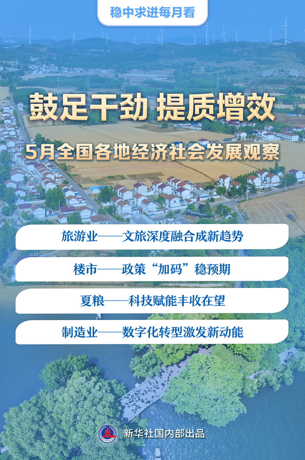春歸夏至,萬(wàn)物生長(zhǎng)。文旅融合向“深”挺進(jìn),樓市政策優(yōu)化調(diào)整,夏收以科技賦能,制造業(yè)數(shù)字化轉(zhuǎn)型提速……提質(zhì)增效成為5月全國(guó)各地經(jīng)濟(jì)社會(huì)發(fā)展的突出特點(diǎn)。