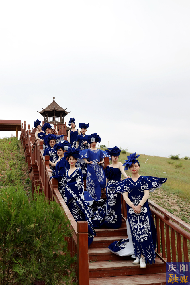 6月4日,慶陽融媒主播身著由鎮(zhèn)原縣文化館館長常燕創(chuàng)意設(shè)計的“剪云裳”慶陽剪紙系列服裝驚艷亮相。其中,“青花瓷”系列作品為全國全網(wǎng)首秀。