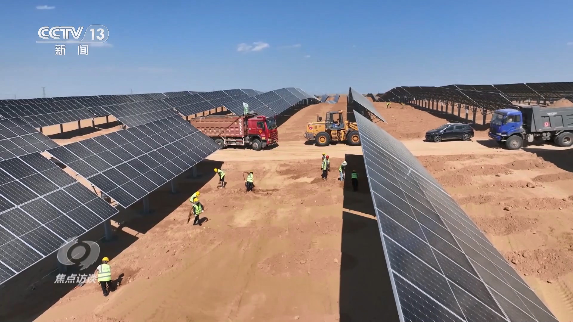 在內(nèi)蒙古庫布其沙漠北緣,一排排深藍(lán)色的太陽能電池板格外醒目。總投資115億元、占地48.7萬畝、光伏裝機(jī)容量13GW的新能源基地正在加緊建設(shè)。這個新能源項(xiàng)目是鄂爾多斯市防沙治沙的重點(diǎn)工程。沙漠、沙地地廣人稀,蘊(yùn)藏著巨大的風(fēng)能、太陽能資源。內(nèi)蒙古自治區(qū)“跳出治沙看治沙”,實(shí)施防沙治沙和風(fēng)電光伏一體化工程,統(tǒng)籌推進(jìn)增綠、增能、增收,力求取得1+1>2的效果。