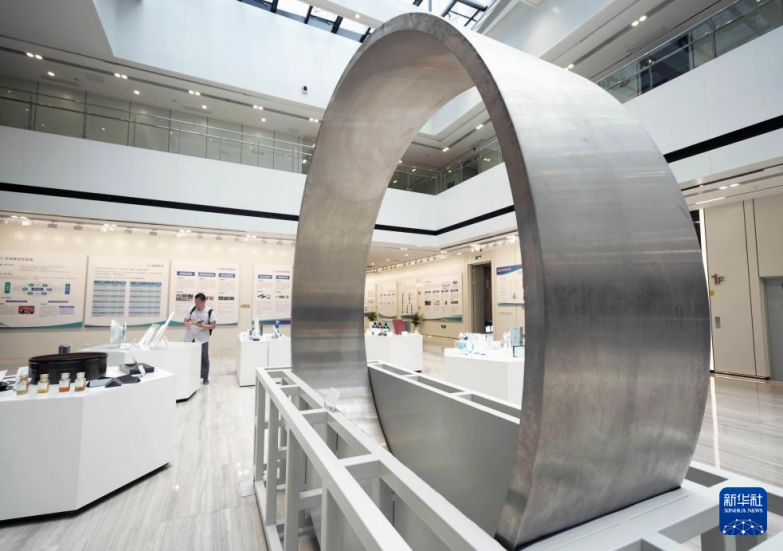 6月1日,長三角先進材料研究院展廳在展示一件深海潛航器鈦合金耐壓殼體展品。新華社記者 李尕 攝