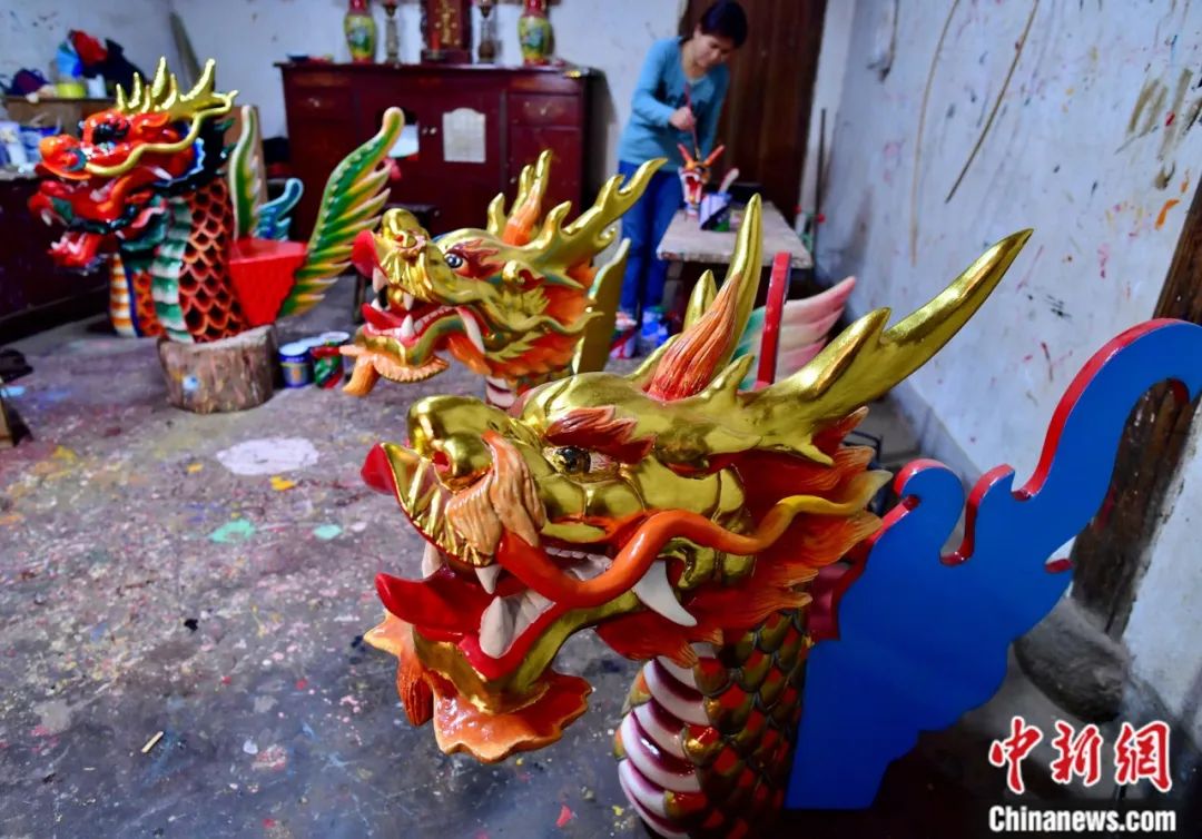 在方莊村的一家龍頭制造廠內(nèi),正在制作中的各式龍頭。龍頭代表著自己所屬村落的信仰和圖騰,因此在龍頭樣式的選擇上,每個(gè)客戶都不盡相同。中新社記者 張斌 攝