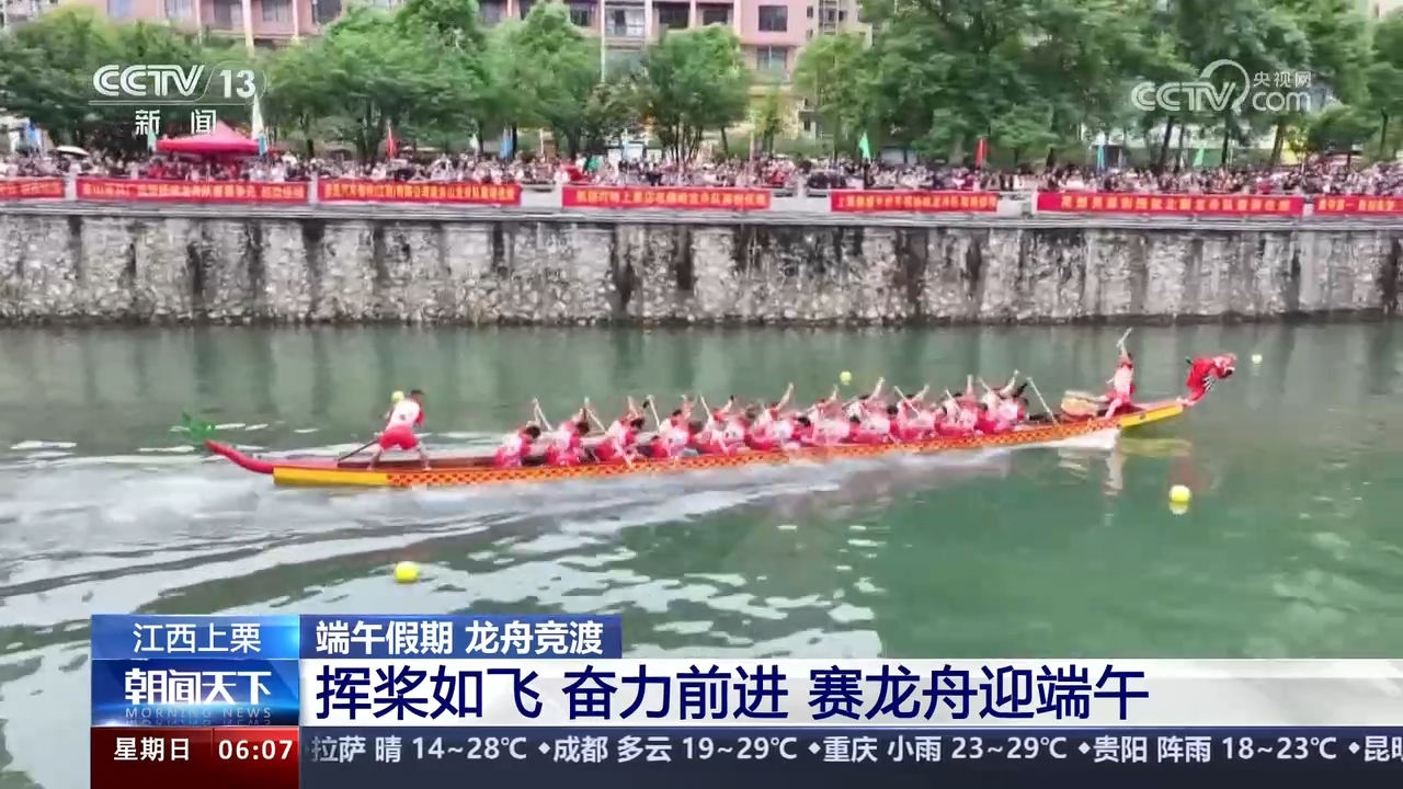 在江西,當(dāng)?shù)匾才e辦了端午龍舟賽,為群眾營造出濃厚的節(jié)日氣氛。