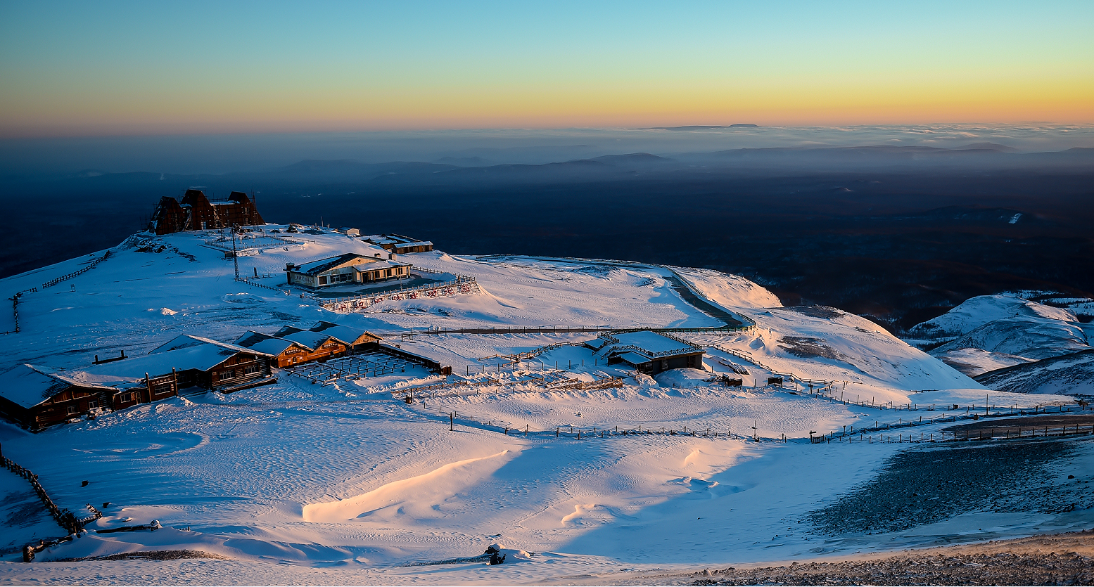 朝陽(yáng)下的長(zhǎng)白山景區(qū)。 記者 王昊飛 攝