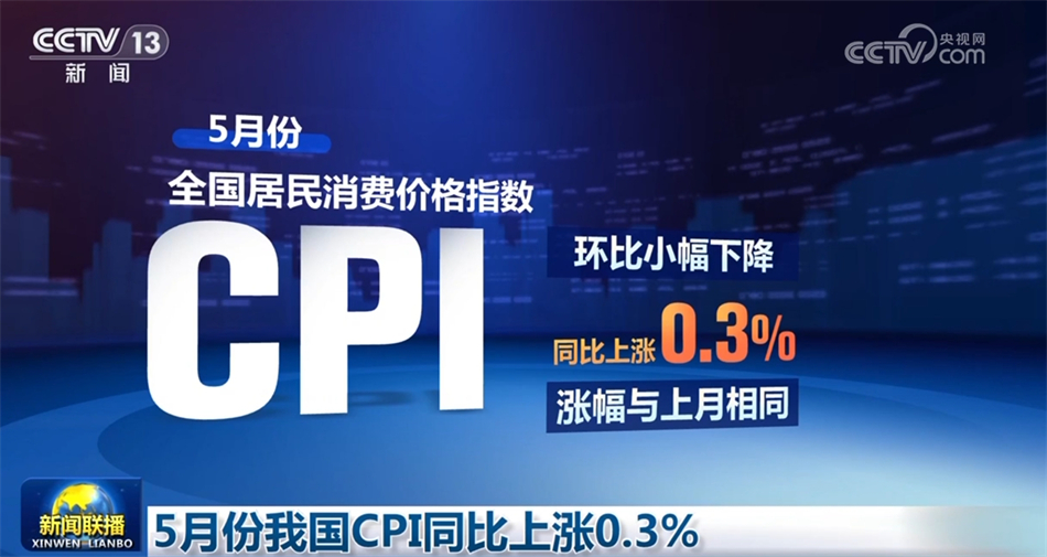 5月份我國CPI同比上漲0.3%