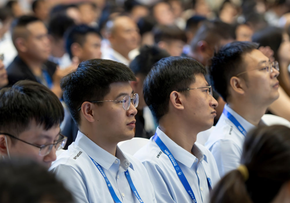 來自臺(tái)灣的青年們?cè)诘诙煤{青年論壇開幕現(xiàn)場(6月14日攝)。新華社記者 魏培全 攝