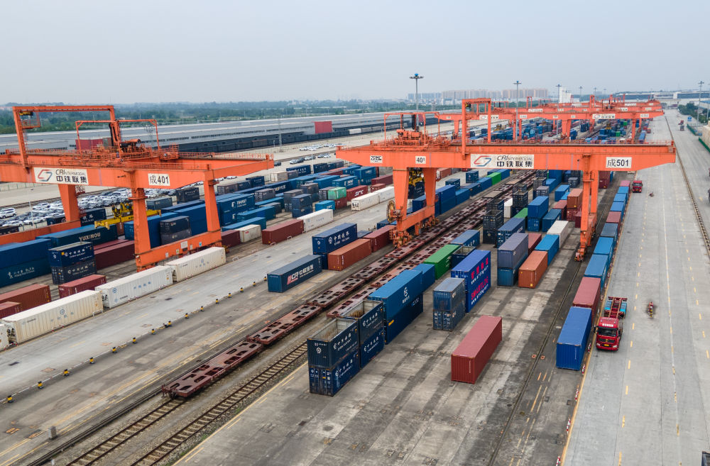 繁忙的成都國際鐵路港中,汽笛接續(xù)千年前的駝鈴聲,亞歐大陸橋上的“鋼鐵駝隊(duì)”中歐班列,用高效率連接著成都與世界。