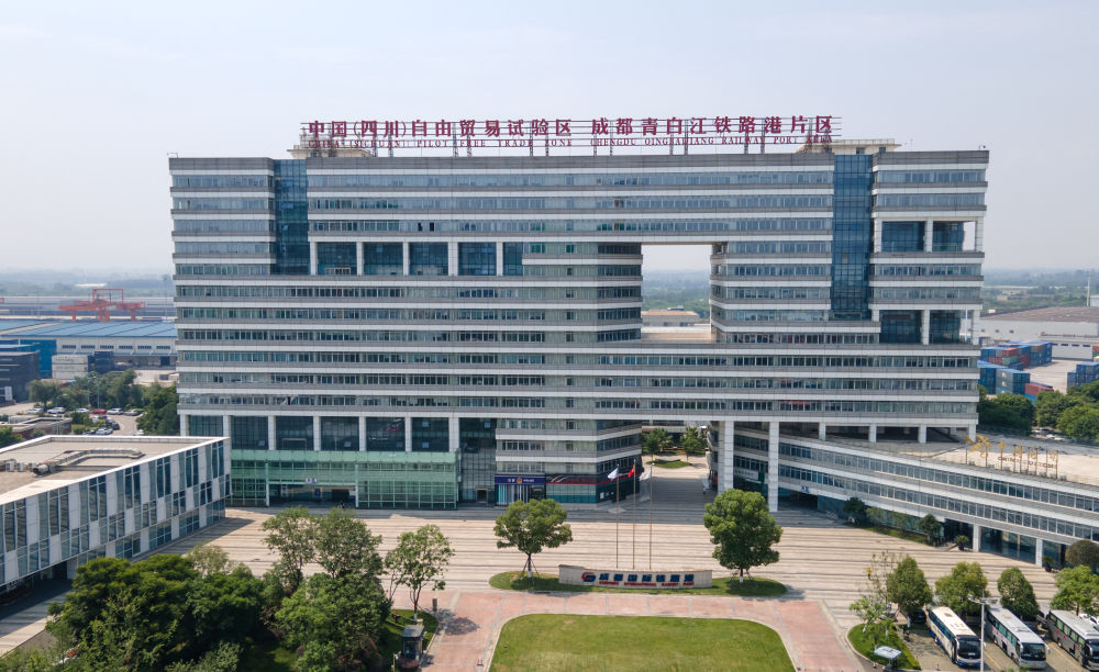 這是2024年6月13日拍攝的中國(四川)自由貿(mào)易試驗(yàn)區(qū)成都青白江鐵路港片區(qū)(無人機(jī)照片)。新華社記者 唐文豪 攝