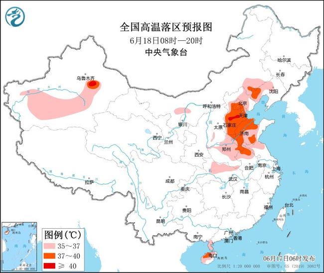 中央氣象臺6月17日06時繼續(xù)發(fā)布高溫黃色預(yù)警:預(yù)計17日白天,內(nèi)蒙古西北部、新疆南疆盆地和東部、河北中南部和東北部、北京、天津、遼寧西部、山東中西部、河南東部和南部、安徽北部、湖北東北部、海南島大部等地有35~36℃高溫天氣,其中,新疆南疆盆地、河北中南部、北京南部、遼寧西南部、山東北部等地部分地區(qū)最高氣溫37~39℃,新疆吐魯番盆地等地局地可達(dá)40℃以上。